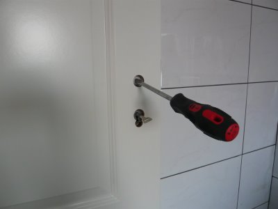 Allerdings fehlt die Türklinke noch. So ein Schraubendreher kann helfen, aber nicht jeder Besuch kommt auf die Idee diesen als Türklinkenersatz zu benutzen.