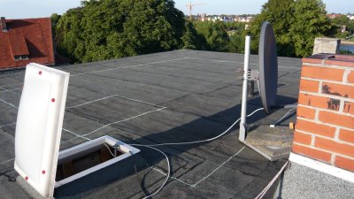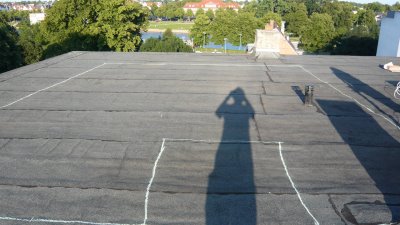 Ich bereite langsam, ganz langsam meine Dachterrasse vor. Noch steht eine Genehmigung aus und ich bin handlungsunfähig, aber Gedanken machen ist OK. Zuerst hab ich den Nachbarskindern Kreide "geklaut" und einmal die Grundrisse aufgemalt. Die Größe ist ja schon genehmigt, also darf ich von diesen Fakten ausgehen.