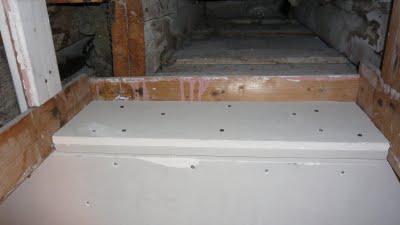 Dann wurden der mitgelieferte feuerfeste Rahmen eingesetzt. Das Fenster ist 49*120 cm groß und das ist ein wirklich gr0ßes Loch das verdammt viel Licht in den Raum läßt. Heute Nacht wird der Putz jetzt trocknen und morgen wird das Fenster eingesetzt und der Rest der Wand verputzt.