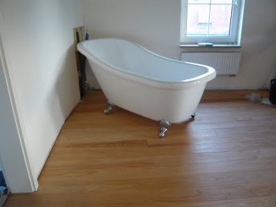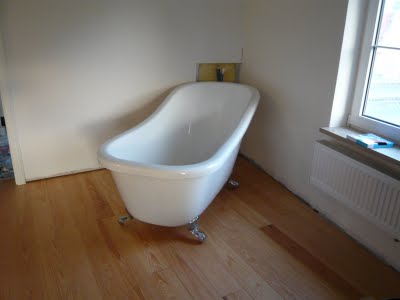 und noch ein Foto von der anderen Seite. In der Länge ist sie perfekt und auch das hochgezogene Kopfteil sowie die Schräge passen perfekt. Da hatte ich richtig Glück, da hab ich schon ganz andere Badewannen probegelegen (ja ihr lest richtig, ich hab etliche Badewanne probegelegen - wir Schleswig-Holsteiner sagen ja "barscheln" dazu, aber das ist ne andere Geschichte).