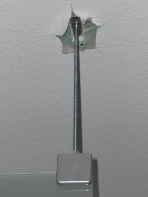 Dann wurde das Loch wieder zugespachtelt und abgeschliffen. Die Gewindestange hab ich dann mit einem Alurohr verkleidet, damit es schicker aussieht.
