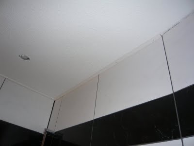 Die Badarbeiten nähern sich dem Ende. An der Decke kommen jetzt weiße Viertel-Stableisten ran, die die Fuge verdecken sollen.