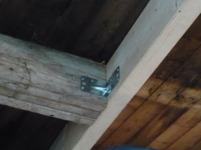Auf beiden Seiten wurde er dann verschraubt und vernagelt. Hier ist die Verbindung mit dem Reststück des alten Dachbalken zu sehen...