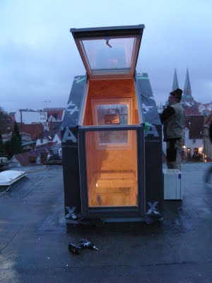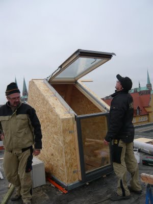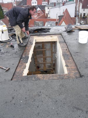 Auf dem Dach lag jede Menge Schneematch und ich hab den ganzen Tag nichts anderes gemacht, ausser Schnee und Wasser vom Dachausstieg fernzuhalten. Das war so richtig kalt da draussen, dass ich erst nach Stunden meine Füße wieder gespürt habe.