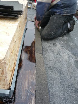 Dann wurde ein kleiner Streifen Bitun über die Zinkplatte getackert.