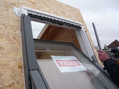 Zuerst wurden die OSB-Platten aufgeschraubt und danach haben wir das Fenster eingesetzt.