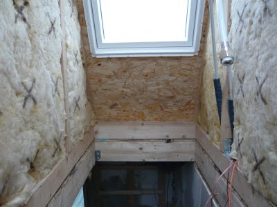 Das ist der Blick nach aussen. Später sollen noch Gipsplatten rauf und alles weiss angemalt werden.