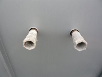 Aufs Dach soll natürlich auch Elektrik, Lautsprecher und Netzwerk verlegt werden. Ob ich später alles brauchen werde ist noch unklar, aber besser ist es auf jeden fall. Bei den Rohrleitungen war noch Platz um die Kabel durchzuziehen.