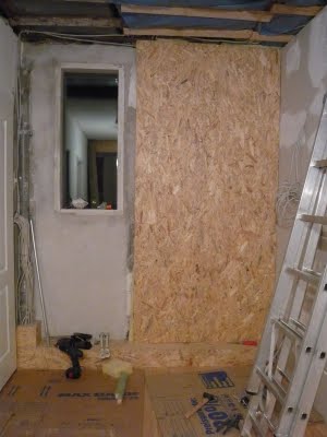 Jetzt sollte eigentlich Gipskarton alles hübsch verkleiden, aber ich denke das wird geändert. Ich werd dort wohl ein Bücherregal bauen mit 17 cm Tiefe aus Nussbaum. Ich brauch noch ein Regal und der Platz dürfte ideal dafür sein. Ich muss nur warten bis die Treppe drinnen ist, um einschätzen zu können, welche Farbe und Größe das Regal haben soll.