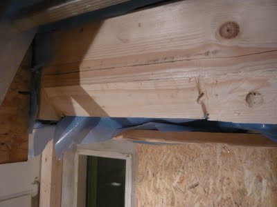 Hier die Stelle am Kamin und dem fachwerk, dort war auch eine Dachlatte vorhanden.