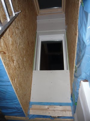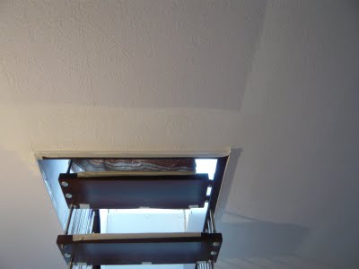 Das war mal wieder echte Stückelarbeit in luftiger Höhe. Auch wenn alles so eng und klein aussieht, die oberste Spitze des Austtiegs ist fünf Meter überm Boden. Da oben auf der Leiter noch überm Kopf zu arbeiten ist haarig, denn mit einer Hand den Gipskarton zu halten, die zweite Hand für die Schraube, die dritte Hand am Akkubohrer und die glückliche vierte Hand zum festhalten, das kann nicht jeder :-)