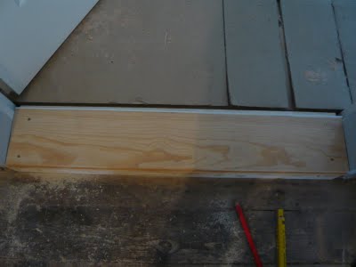 Ich hab jetzt drei Dachlatten unter die Schwelle geschraubt und dann noch einen Rest Holzdiele draufgeschraubt. Das sieht gut aus, aber die 6 cm hohe Kante macht mir etwas Sorgen. Zur Tür hab ich sogar eine Dichtlippe angeklebt. Das gleiche muss ich noch im Türrahmen machen, da zieht es nämlich auch.