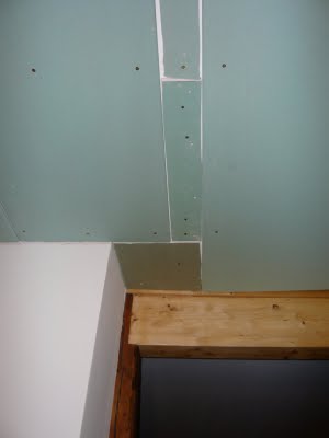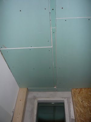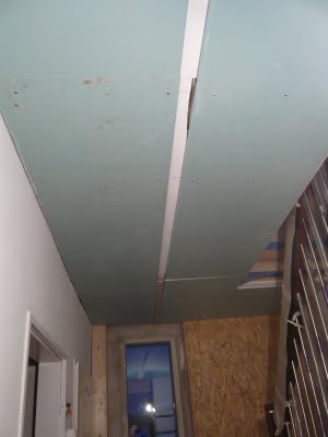 Wir hatten am Sonntag zwar die Decke verkleidet, aber da sich das alles wirklich hingezogen hatte, haben wir darauf verzichtet auch alle Ecken und Lücken gleich mitzumachen. Daher habe ich gestern noch einmal die Ecken dicht gemacht. Das Problem dabei war, dass die Schrauben nicht richtig halten. An vielen Stellen waren einfach keine Dachlatten darunter vorhanden und so mussten die kleinen Stücke an die Styropor-Gipskartonplatten geschraubt werden. Das ist nicht so schlimm, denn später wird das verputzt und eine Tapete kommt auch noch darunter und die kleinen Stücke wiegen natürlich nichts.