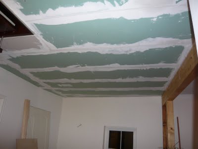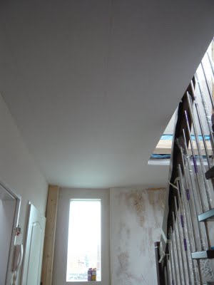 Die Decke ist jetzt komplett vorgespachtelt aber der Ausstieg fehlt noch.