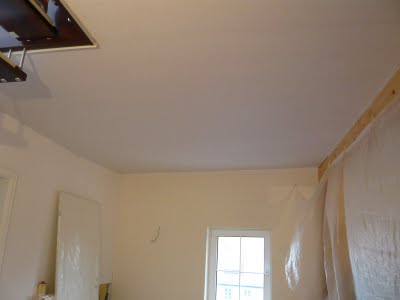 Die Decke wurde nun ein zweites mal gespachtelt. den Unterschied sieht man kaum es ist alles nur ebener und sauberer.